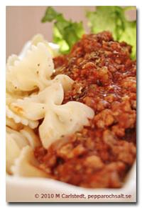Oregano, vitlök och olivolja... Visst kan köttfärssås vara gott! Som ett barnvänligt alternativ på festen eller varför inte smaksatt med vin och serverat med ädelost till pastan som fredagsmiddag? Du behöverReceptet är för 4 personer.